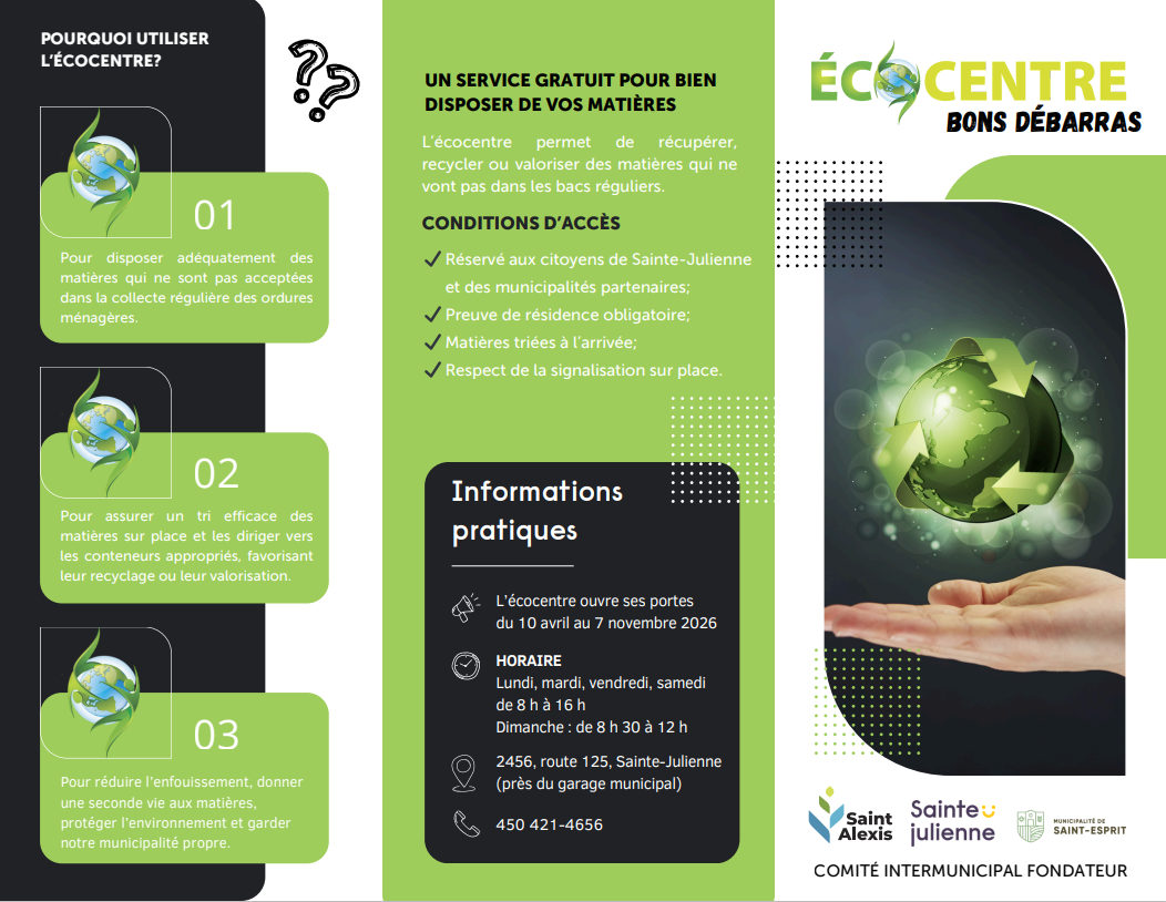 L'Écocentre sera ouvert du 10 avril au 7 novembre 2026
