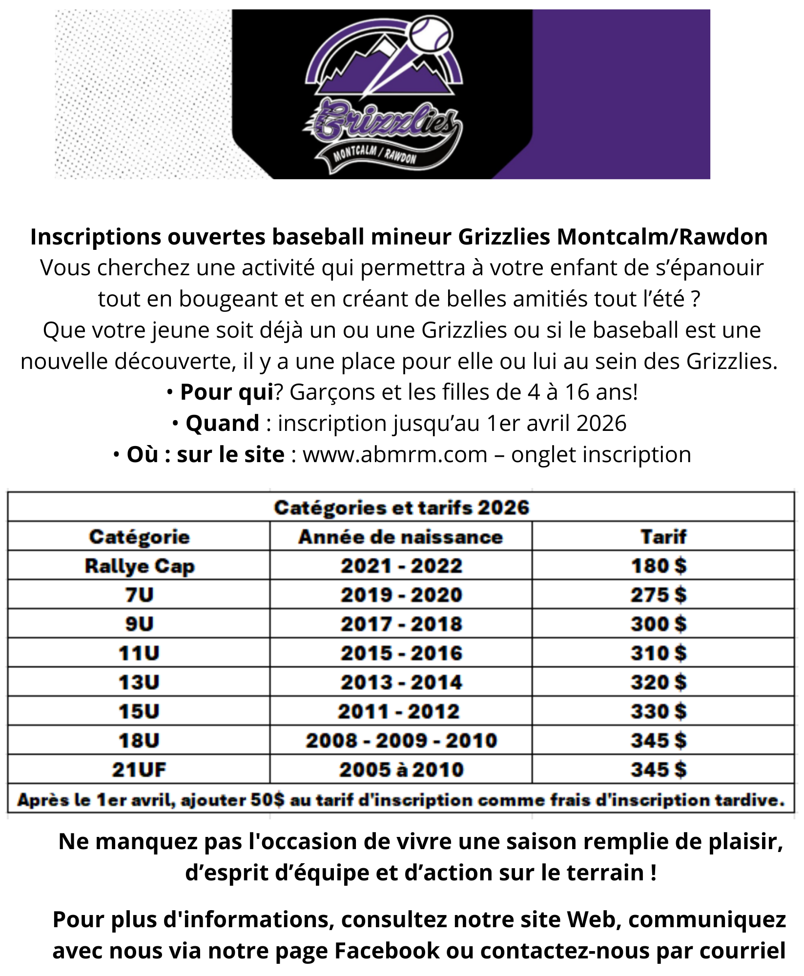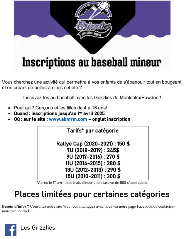 Accueil Loisirs et tourisme Activités, culture et installations Baseball mineur les Grizzlies