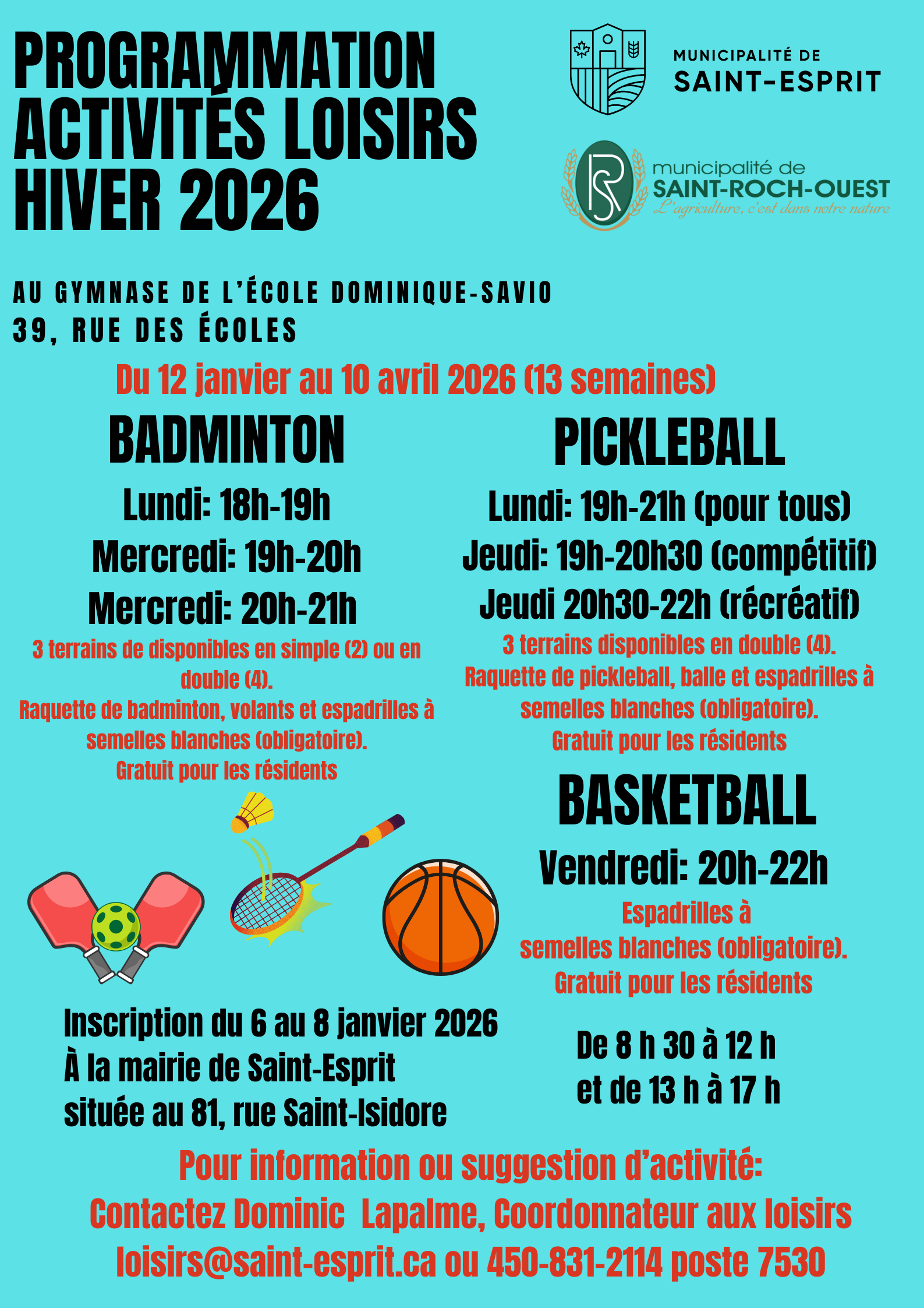 Lieu : Gymnase de l’école Dominique-Savio, 39 rue des Écoles, Saint-Esprit